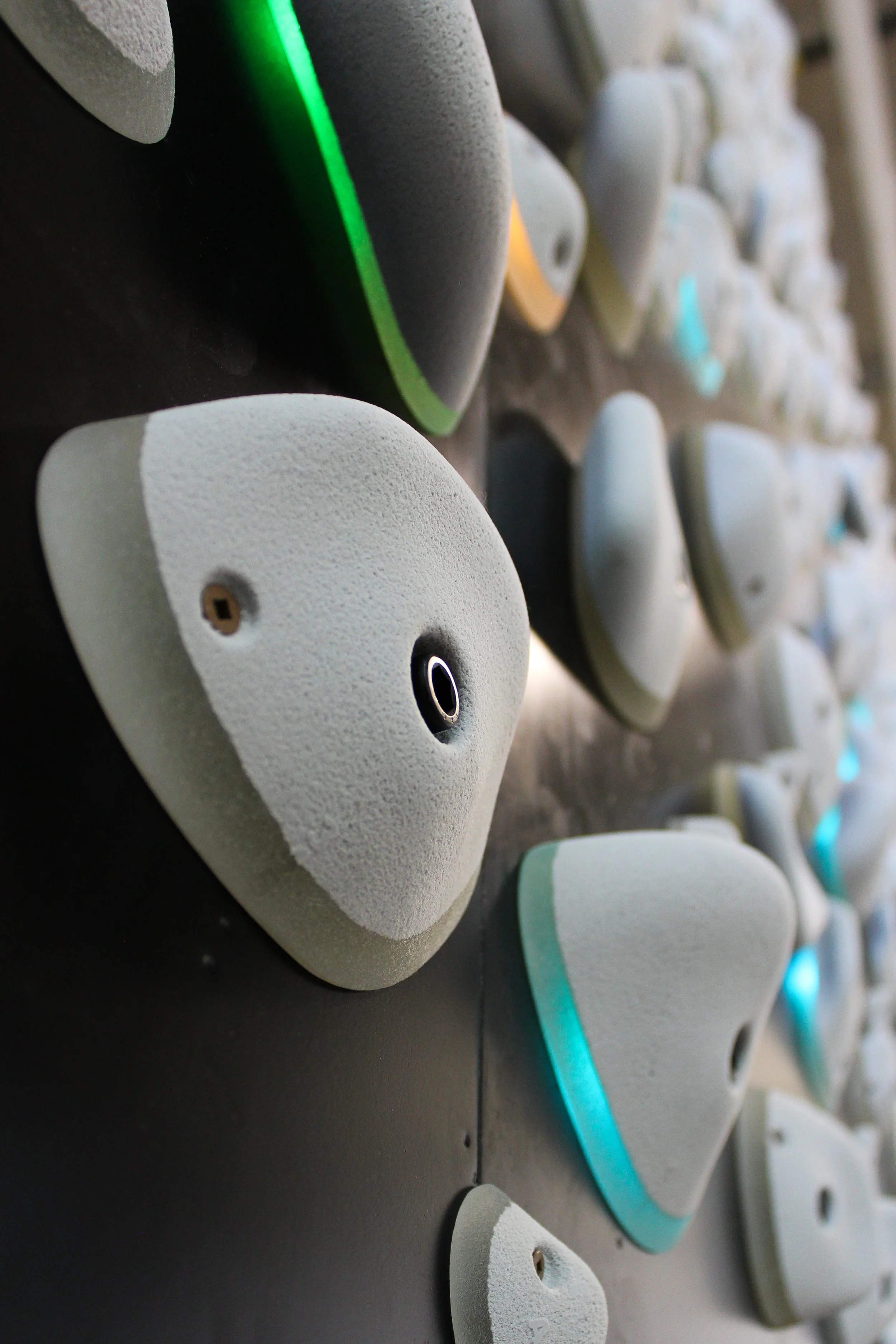 Explore training on an interactive, adjustable climbing wall with guided instruction and personalized feedback.